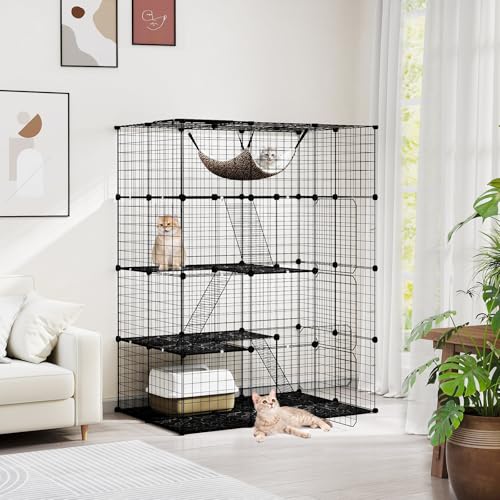 Dieses großzügige Metallgehege eignet sich perfekt für Haushalte mit mehreren Katzen. Auch andere Kleintiere wie Welpen, Kaninchen, Meerschweinchen oder Eichhörnchen finden hier einen sicheren und komfortablen Spiel- und Ruheraum.
