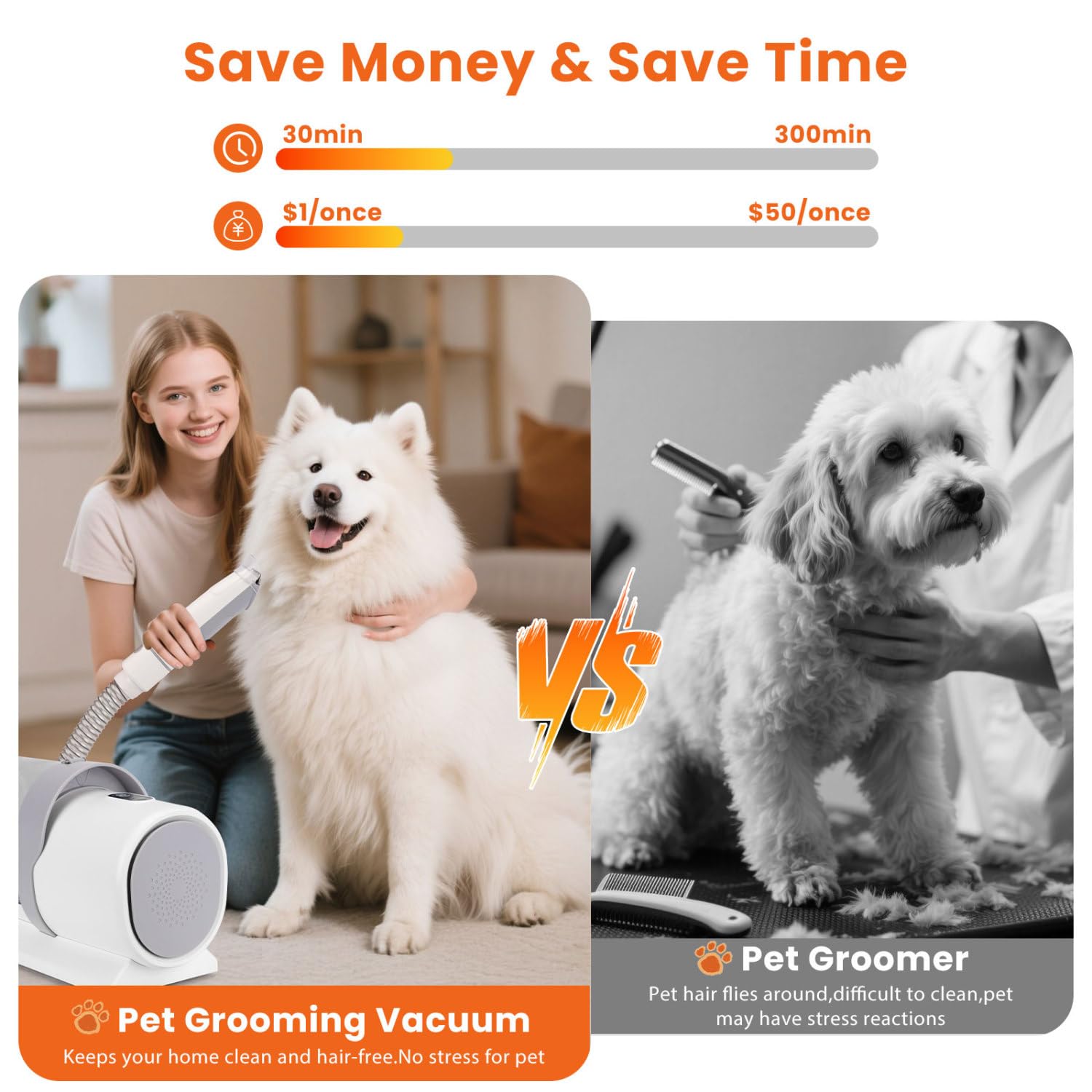 Der Staubsauger für Hundhaare ist mit professioneller Geräuschreduzierungstechnologie ausgestattet und arbeitet mit einem Geräuschpegel von unter 65 dB – viel leiser als herkömmliche Staubsauger. Dies sorgt dafür, dass Ihre Haustiere nicht erschrecken. Es wird empfohlen, mit der Pflegebürste zu beginnen, um eine angenehme Pflegeerfahrung zu gewährleisten, und dann den ersten Schrittmodus zu verwenden.